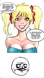 An illustrated comic strip featuring a woman dressed as a character, conversing with another, humorously capturing a conversation between the two.
