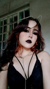 A seductive image of Lili, the model from OnlyFans. She is seen wearing dramatic makeup and a black outfit, with her hair styled in loose waves. The background is blurred, emphasizing Lili as the focal point of the image.