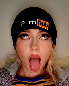 A young adult woman with striking makeup, capturing an intimate selfie. She has a beanie with the word 'PRN' on it, indicating an affiliation with adult content platforms like OnlyFans. Aimee Jay is the name of the model.