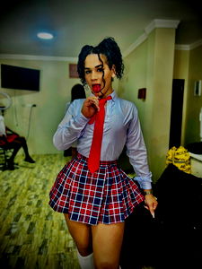 Aisha Ormeño is a captivating OnlyFans model known for her unique style and confident persona. She's often seen in school-girl inspired outfits like the blue and white checkered skirt and tie set in this image. Her presence adds an element of fun to the otherwise mundane room. Aisha Ormeño is truly a force to be reckoned with on OnlyFans!