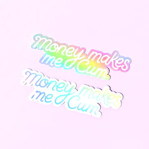 These stickers add a touch of humor to your space. One says, 'I love money,' and the other is a playful twist on a famous song lyric, 'Money makes me cum!' Perfect for anyone who enjoys a bit of comedy in their living or working environment. Add some fun to your walls with these unique stickers!