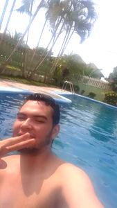 Join Ale G in a cheerful swim at La Ceiba! Catch the moment before they dive into the water.