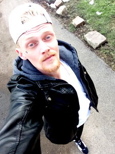 A young man poses confidently on a city street, capturing his journey with a selfie. His style is casual and edgy, perfect for the urban vibe. He's ready to step out and explore the city.