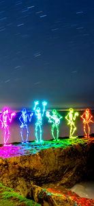 Model Kimboslice poses confidently by a pool under the moonlit sky, with a cityscape in the background.