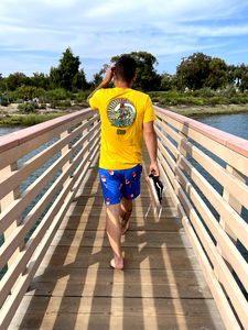 A young adult, Aka Rasta, enjoys a leisurely walk on a wooden boardwalk. Dressed in casual beachwear and carrying a surfboard, they embody the essence of outdoor adventure. The image captures a moment of tranquility, with the person standing amidst natural beauty.