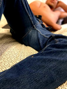 Photographer AKAstrech captures a moment of tranquility, with the model reclining on a bed, casually dressed and comfortable in their own skin. They seem to be enjoying some downtime, perhaps after a long day or before starting a new one. The image beautifully captures the essence of relaxation and self-care.