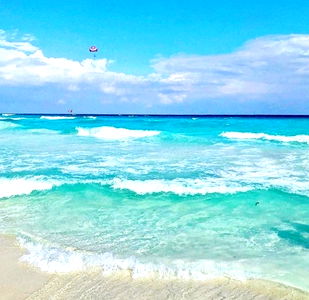 A beautiful and bustling beach scene with Aki, a gorgeous OnlyFans model, in her swimwear. With a clear sky and calm sea, it's a perfect day for some fun in the sun. This image captures the spirit of summer and the allure of island life.