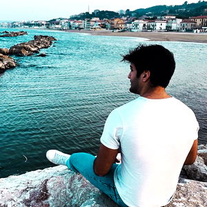 This image captures Al3xox02, an Italian model, posing confidently against the backdrop of a modern outdoor setting. He is leaning casually against a stone wall, adding an urban touch to his attire. His pose suggests a relaxed and stylish vibe, aligning with his persona as a model. The image effectively showcases his professional appearance and demeanor.
