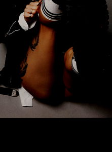 Alana is an OnlyFans model from Russia. Her photoshoot has a dark and moody aesthetic with dramatic lighting. She is wearing revealing clothing, including high heels and fishnet stockings. The background is blurred to keep the focus on her.