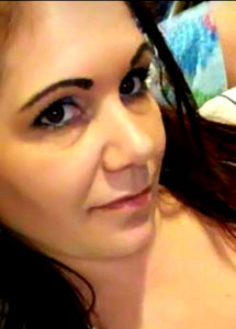 Vermont-based model posing for a selfie. Wearing a choker necklace and casual makeup. Long dark hair with subtle highlights. The background is indistinct, suggesting the focus is on her. She appears to be in an interior space.