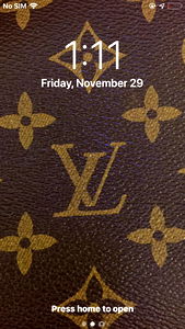 A sleek phone with a vibrant Louis Vuitton wallpaper in the style of Alaskan Barbie, Brii. A unique blend of luxury and playfulness.