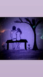 A digital art piece showcasing a couple sitting on a bench under a starry sky, with an intricate background and a heartfelt depiction of their connection. OnlyFans model Yair Alberto Rosas Alvarez has created this beautiful image.