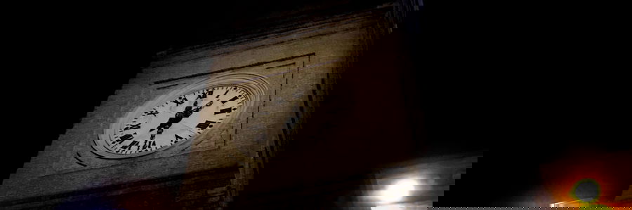 This is a nighttime photo capturing a clock tower in the city. The tower features a prominent clock face and stands against a dark sky. It appears to be a historical or notable landmark, possibly an iconic site for locals and tourists alike. The image suggests a peaceful atmosphere with minimal movement, indicated by the stillness of the objects within the frame.