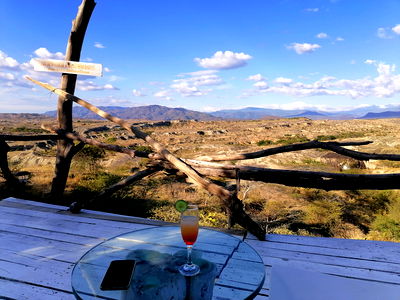 Aldrin X is standing on a dirt road atop a red clay hill with a picturesque view. He's wearing sunglasses, a straw hat, and a white polo shirt. Aldrin seems to be enjoying his day of guiding tours and sharing the natural beauty of the area.