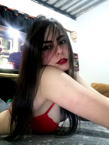 A young, beautiful model posing in lingerie and black fishnet stockings. She appears to be an OnlyFans content creator with a Cra 2b # 54 66 profile, suggesting that she is likely in her late teens or early twenties. Her gender is female. Her pose is sensual and inviting. She has dark hair and is wearing black lingerie with lace detailing and black fishnet stockings. The setting seems to be a private room.