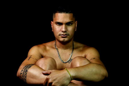 Alejandro Cordoba is an OnlyFans model showcasing his physique. He poses shirtless, capturing the viewer's attention with his toned muscles.