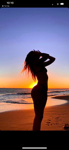 Alejandra, a Colombian model, basks in the warm glow of a sunset at the beach. She stands confidently, silhouetted against the vibrant backdrop, her gaze lost in the horizon.