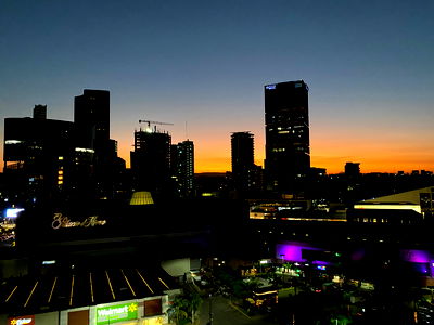 A breathtaking panoramic view of a city skyline during sunset, featuring vibrant colors and towering structures. A perfect blend of urban life and natural beauty.