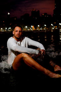 In the midst of a bustling cityscape, OnlyFans model Ale Siewert confidently showcases his physique. He stands poised against the backdrop of towering buildings and illuminated by the glow of city lights. Dressed in athletic attire, his ripped physique is on full display, reflecting dedication to fitness and strength. The urban setting adds a dynamic element to this striking portrait.