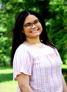 A joyful portrait of Mechelle, a young woman with radiant smiles. She's captured in a casual style, radiating positive energy.