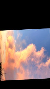 A picturesque view of a sunset with fluffy clouds, set against the silhouette of an urban skyline. The warm hues of the setting sun paint a serene and tranquil atmosphere. This is a beautiful representation of nature's grandeur.