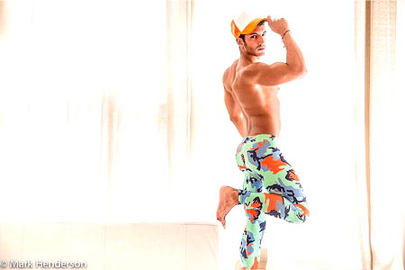 The OnlyFans model Alessandro is flexing his muscles amidst lush greenery, showcasing his toned physique and vibrant swimwear. His athletic build and confident pose suggest a dedication to fitness and outdoor activities.