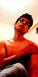 This image shows Alex Hernรกendez, a fitness model from Mรฉxico, captured in a moment of personal reflection. Dressed only in his gym clothes and holding a smartphone close to his face, he presents an unfiltered look at the dedication and effort that goes into maintaining his physique.