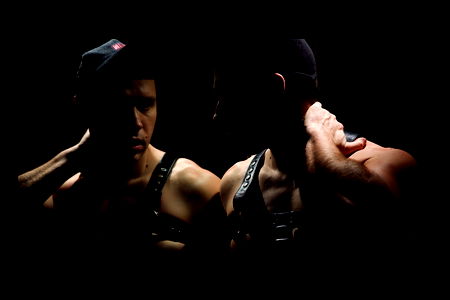 A black and white photograph of a shirtless man, poised with hands on hips, leaning against an open door. His gaze is directed outward, embodying a sense of introspection and mystery.
