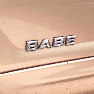 A bronze car emblem proudly displaying the brand 'BAE' in a vintage font, with a playful twist on the word. A unique and stylish accessory for any automobile enthusiast looking to add a touch of humor to their vehicle.
