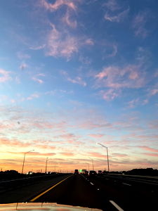 A breathtaking sunset with clouds illuminated by the sun, captured in an image featuring a model named Alexandra. The sky is awash with hues of pink and orange, with a bridge visible in the background. Alexandra's presence adds a sense of personal touch to the landscape.