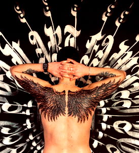 Alexandrite, a Ukraine-based OnlyFans model, poses confidently for this promotional image. In the background is a message that reads 'Crazy' along with their handle. The photo also captures a tattooed arm, adding to the allure of the model.