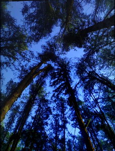 The image shows a young man with tattoos taking a selfie. He is shirtless and appears to be in an outdoor setting with lush greenery. The lighting suggests it might be a sunny day, and the subject seems relaxed and engaged with the camera.