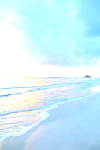 A breathtaking beach scene at sunset. The sandy shore is inviting with the warm colors of the setting sun reflecting on the water. This image evokes a sense of tranquility and relaxation, perfect for any beach-themed content.