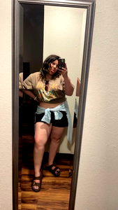 Alexis, a popular Onlyfans model, captures an intimate moment in the bathroom mirror. Dressed casually, she seems to be posing for her fans. The bathroom's decor and her outfit suggest a relaxed and informal setting.