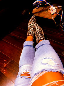 Ally is a beautiful OnlyFans model from Orlando, FL. She's sitting casually in her favorite jeans and snake-patterned boots. In this candid shot, she's lost in thought, capturing the essence of her personality.