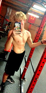 A young, blond male model for OnlyFans, posing against a natural backdrop.