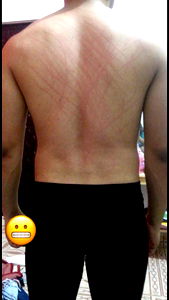 Model Alex Muรฑoa, from Nuevo Leรณn, standing shirtless in a hotel room. Taking a mirror selfie.