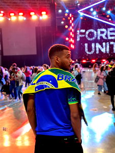 The image features Alex Santos, a fitness enthusiast from Portugal. He is shirtless and is taking a selfie in the mirror of what appears to be a bathroom. The photo captures his well-defined physique, reflecting his dedication to health and fitness. The background suggests a modern, well-lit space that could be part of a gym or a spa.
