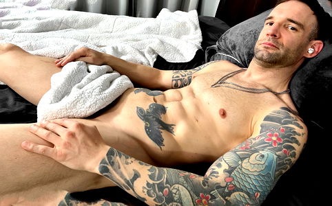 Alex Legend is a renowned OnlyFans model based in California, known for his unique and provocative photoshoots. In this image, he is captured in a sensual pose, showcasing his athletic physique and tattoos. His confident expression adds to the allure of the photo. The backdrop enhances the focus on Alex, making him the centerpiece of the image.