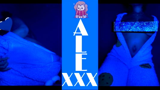 This image showcases an OnlyFans model, AlexxxTheLion, from the series Under your bed. The model is seen in a vibrant blue light, with a playful touch of green and yellow accessories that add to the allure. She's wearing a matching pair of pajamas with the same color scheme.