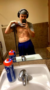 Whitewater Wisconsin native Alex Track, a social media influencer and model from the Midwest, showcases his physique in this selfie. With a chiseled jawline and well-defined muscles, he embodies the perfect blend of athleticism and style.