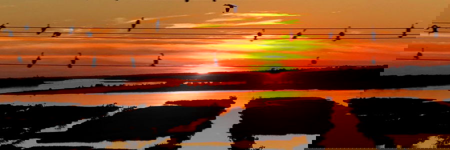 The photo captures an interesting view from the dashboard of a car, showing a person sitting in the front seat. The scene is set during sunset, which casts a warm glow on the surroundings.
