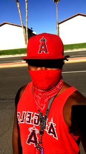 Algrex, a passionate baseball fan from California, is ready for the next game in his red and black uniform. He's proud to represent the Angels and is eagerly waiting to cheer on his team.