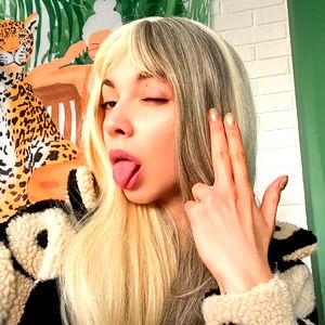 Alice Growley, a social media influencer and model known for her bold and creative style, poses for the camera. Her blonde hair contrasts with her playful expression as she holds up a peace sign in front of a cheerful backdrop.