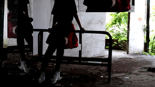In a surreal setting reminiscent of Alice's Adventures in Wonderland, model Alice Wightness embodies the rebellious spirit of the character. She stands confidently on a rusty metal railing against a backdrop of a disused factory, challenging conventions and expectations in an age where individuality and self-expression are more critical than ever. Her outfit, a blend of rebellious street style with a touch of whimsy, complements the eclectic nature of the scene.