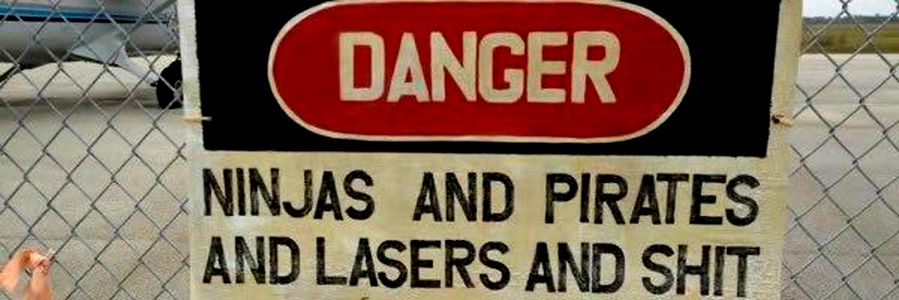 Danger sign warns of pirates, ninjas, laser beams, and shit.