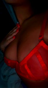 An OnlyFans model is captured in a candid pose. She wears red fishnet stockings and lingerie, sitting on a bed with a glimpse of a white wall. Her pose suggests a moment of personal expression or content creation for her audience.