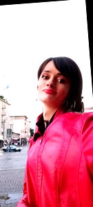 Alysia Caitlyn, a popular Onlyfans model from Deutschland, is seen taking a selfie. She's wearing a vibrant red jacket and seems to be enjoying a leisurely day outdoors.