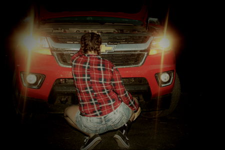 Model Ali, from Wyoming, poses in a flannel shirt, showcasing her unique style. She is holding a white cat, adding an element of surprise and delight to the image.