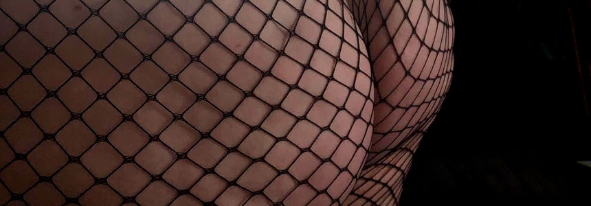 AlishaPeach, a German model, exudes confidence in this image. She is clad in a classic fishnet stocking, adding an air of mystery and allure.